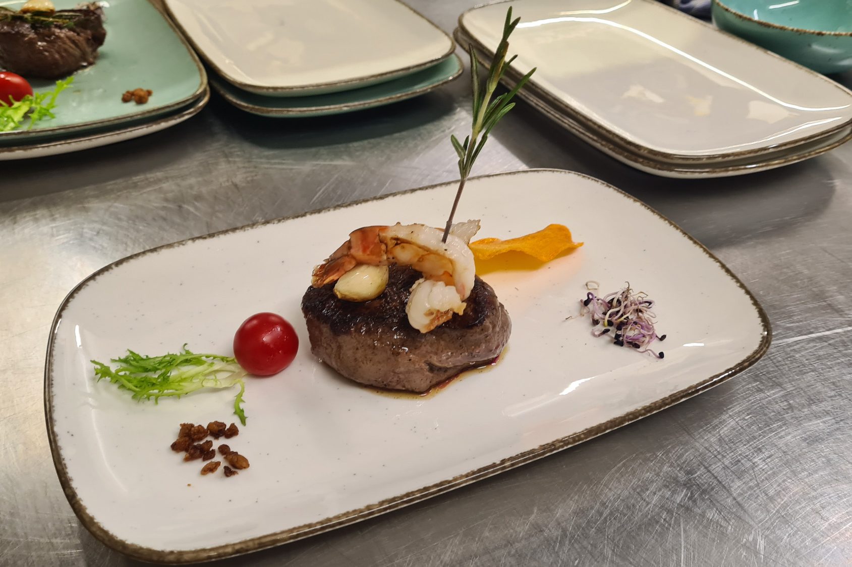 Unser Highlight "Surf & Turf" Rinderfilet und Rießengarnele vom Grill.
